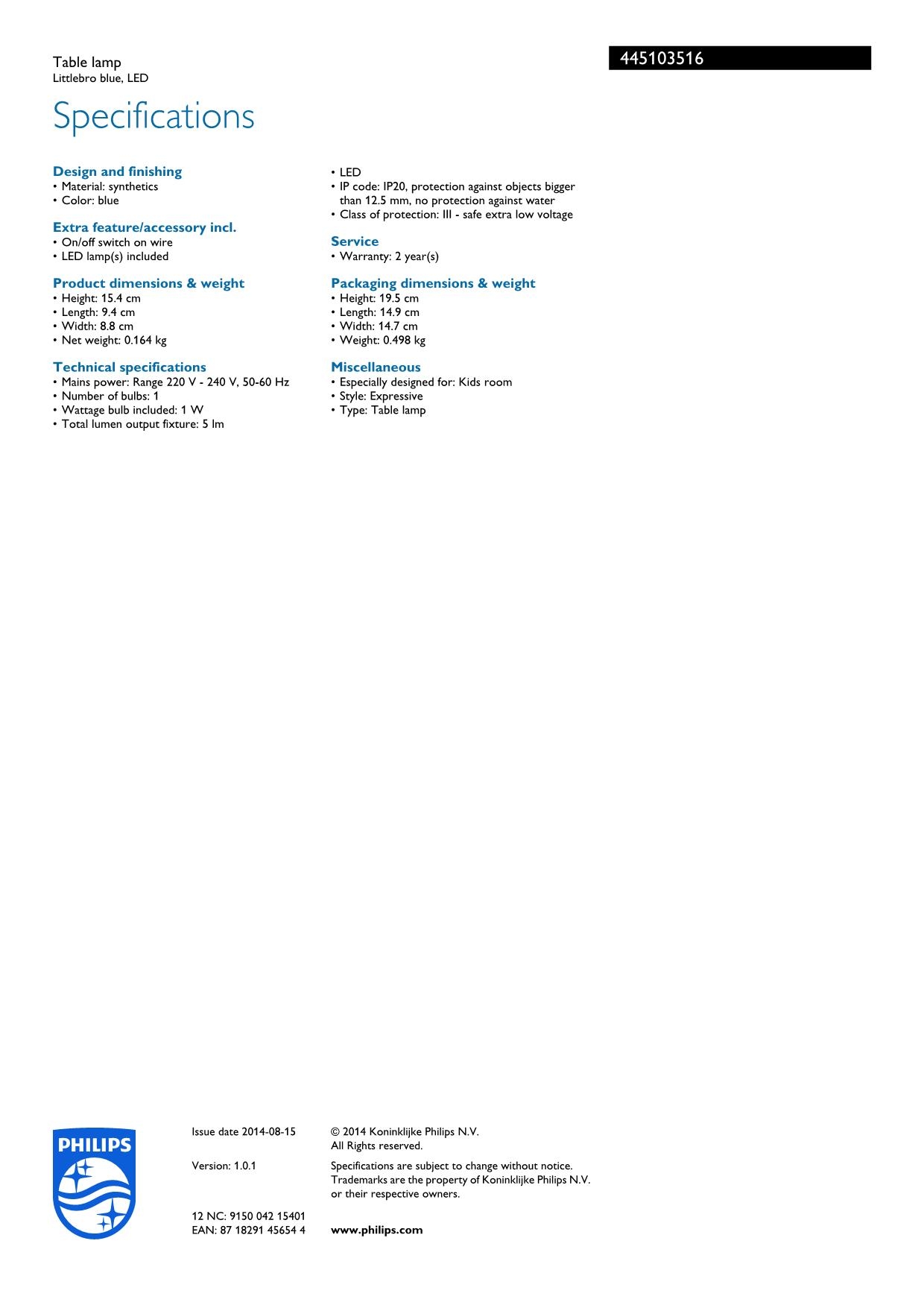 Детская настольная лампа Philips 44510/35/16