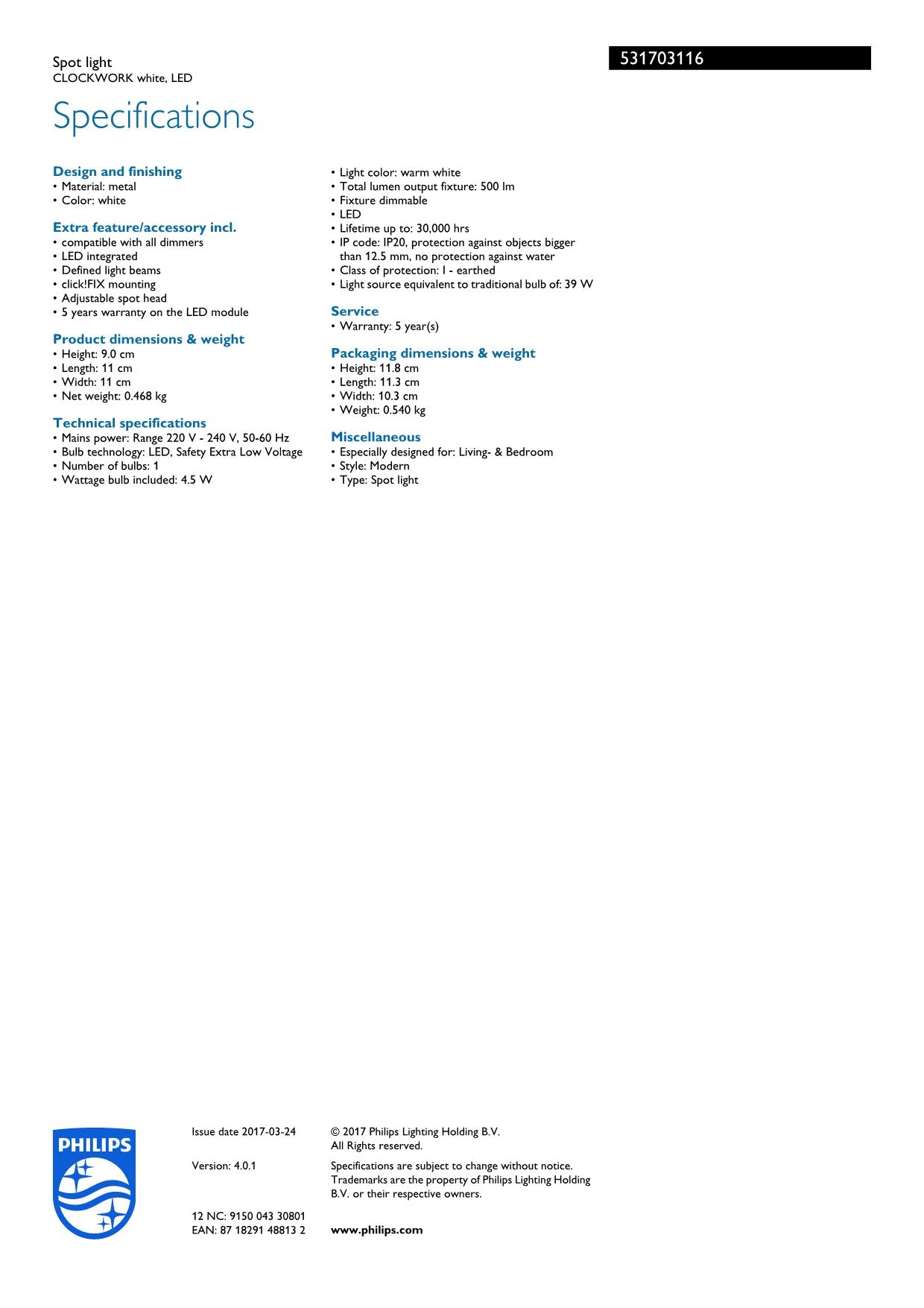 Настенный светильник Philips 53170/31/16
