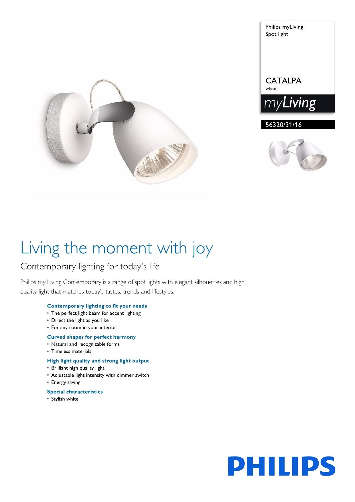 Бра Philips 56320/31/16 из колекции CATALPA одного из лучших производителей осветительных приборов имеет мощность 75 W и цоколь GU10. Цвет основания данной модели: белый. Для производства использовали высококачественный материал: металл. Купить Бра Philips 56320/31/16 вы можете в нашем интернет-магазине Лінія Свiтла.