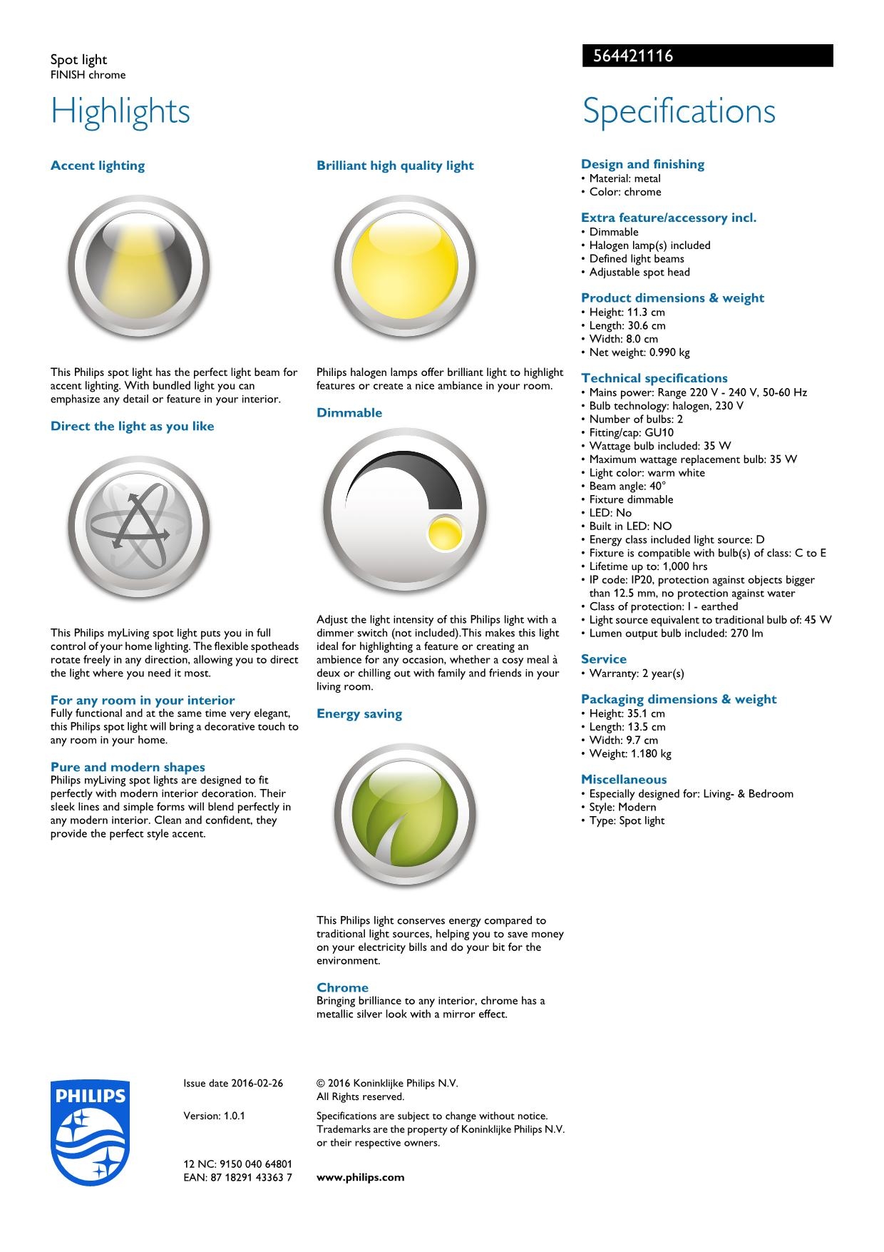 Бра Philips 56442/11/16 из колекции MyLiving одного из лучших производителей осветительных приборов имеет мощность 35 W и цоколь GU10. Цвет основания данной модели: хром. Для производства использовали высококачественный материал: металл. Купить Бра Philips 56442/11/16 вы можете в нашем интернет-магазине Лінія Свiтла.