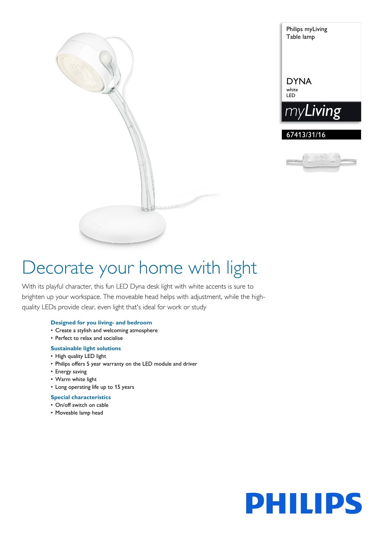 Настольная лампа Philips 67413/31/16 из колекции myHomeOffice одного из лучших производителей осветительных приборов имеет мощность 4 W и LED модуль. Цвет основания данной модели: белый. Для производства использовали высококачественный материал: пластик. Настольная лампа 67413/31/16 выполнена в современном стиле с плафоном формы полусфера. Купить Настольная лампа Philips 67413/31/16 вы можете в нашем интернет-магазине Лінія Свiтла.