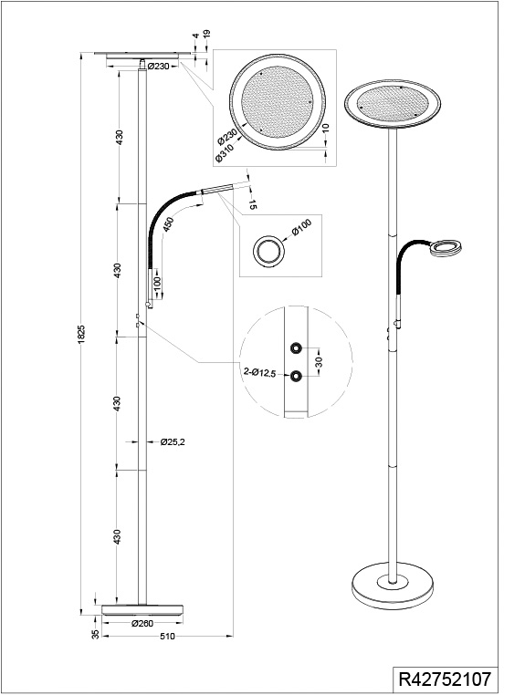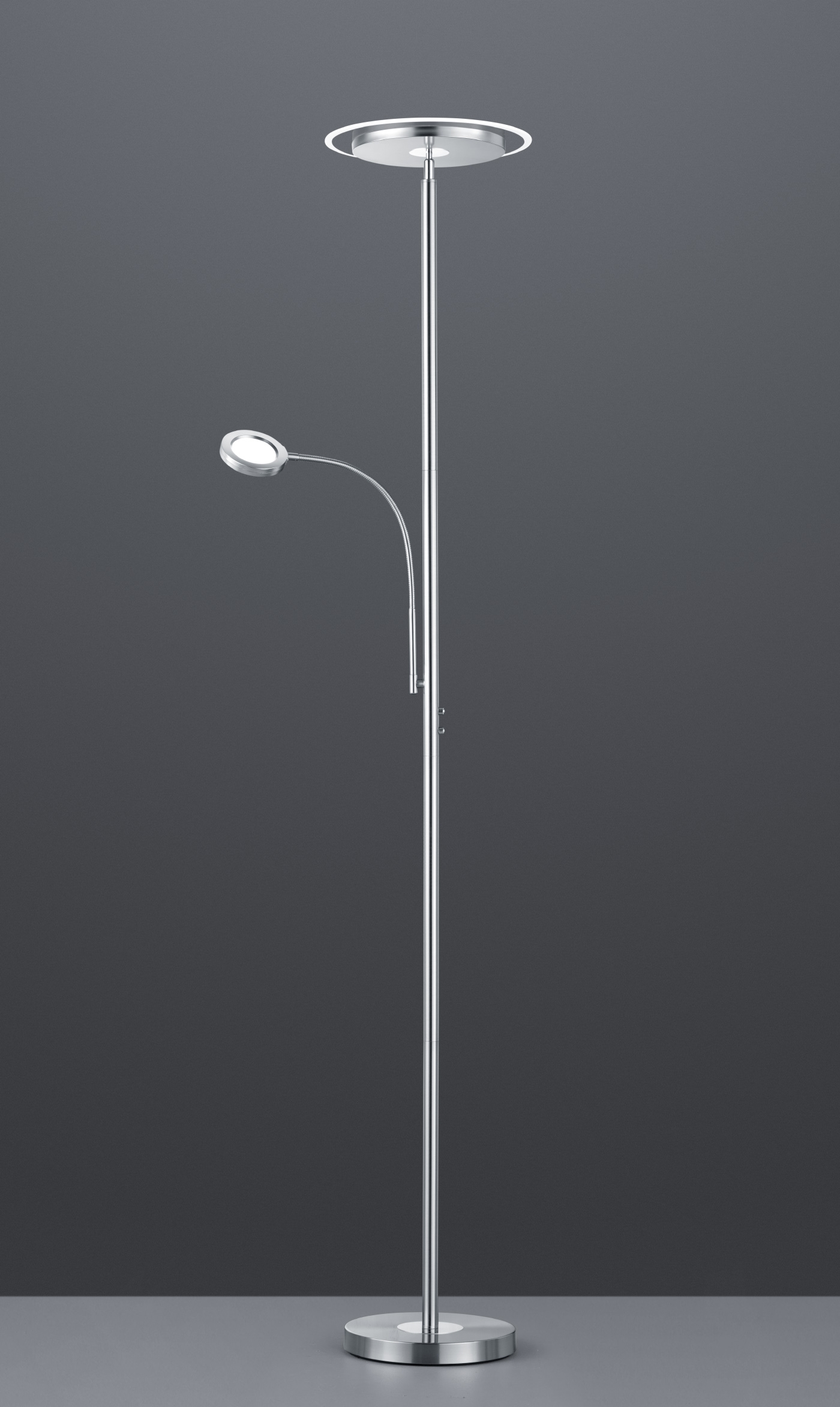 Купить торшер Trio R42752107 из коллекции Ackbar одного из лучших немецких производителей осветительных приборов Вы можете в нашем магазине Линия Света. Он имеет мощность: 18 W и цоколь LED. Цвет основания данной модели: никель. Для производства использовали высококачественный материал: металл. Светильник R42752107 выполнен в современном стиле с плафоном формы круг.