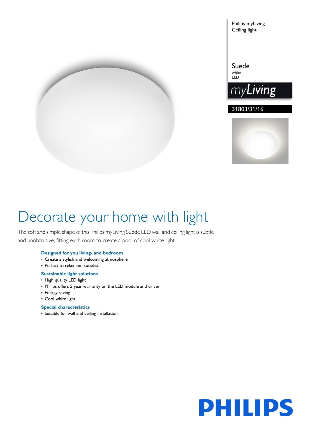 Потолочный светильник Philips 31803/31/16 из колекции Suede одного из лучших производителей осветительных приборов имеет мощность 7 W и LED модуль. Цвет основания данной модели: белый. Для производства использовали высококачественный материал: металл. Потолочный светильник 31803/31/16 выполнен в современном стиле с плафоном формы круг и крепится на пластину. Купить Потолочный светильник Philips 31803/31/16 вы можете в нашем интернет-магазине Лінія Свiтла.