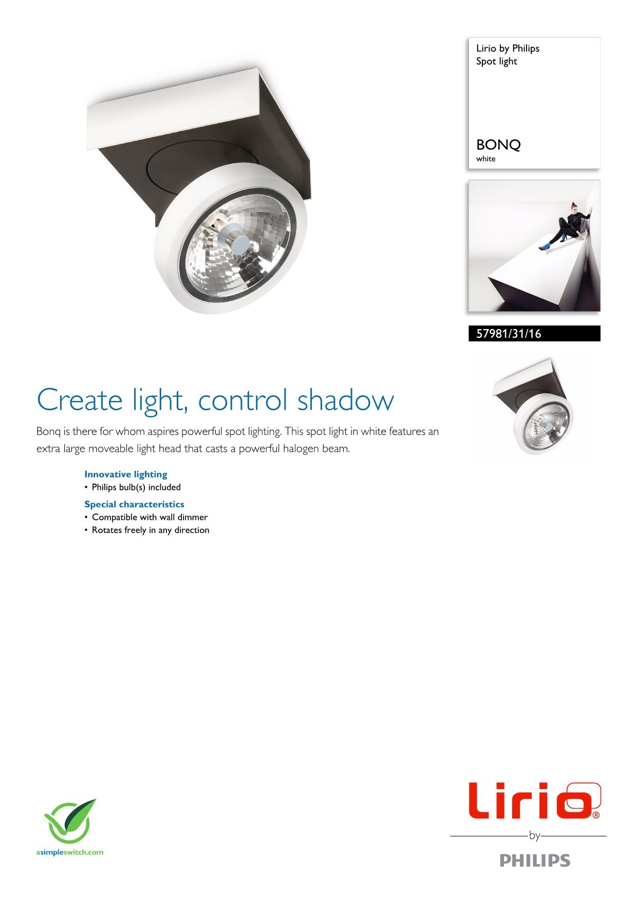 Потолочный светильник Philips 57981/31/16 из колекции ARCITONE одного из лучших производителей осветительных приборов имеет мощность 45 W и цоколь G53. Цвет основания данной модели: белый. Для производства использовали высококачественный материал: металл. Потолочный светильник 57981/31/16 выполнен в современном стиле с плафоном формы круг и крепится на пластину. Купить Потолочный светильник Philips 57981/31/16 вы можете в нашем интернет-магазине Лінія Свiтла.