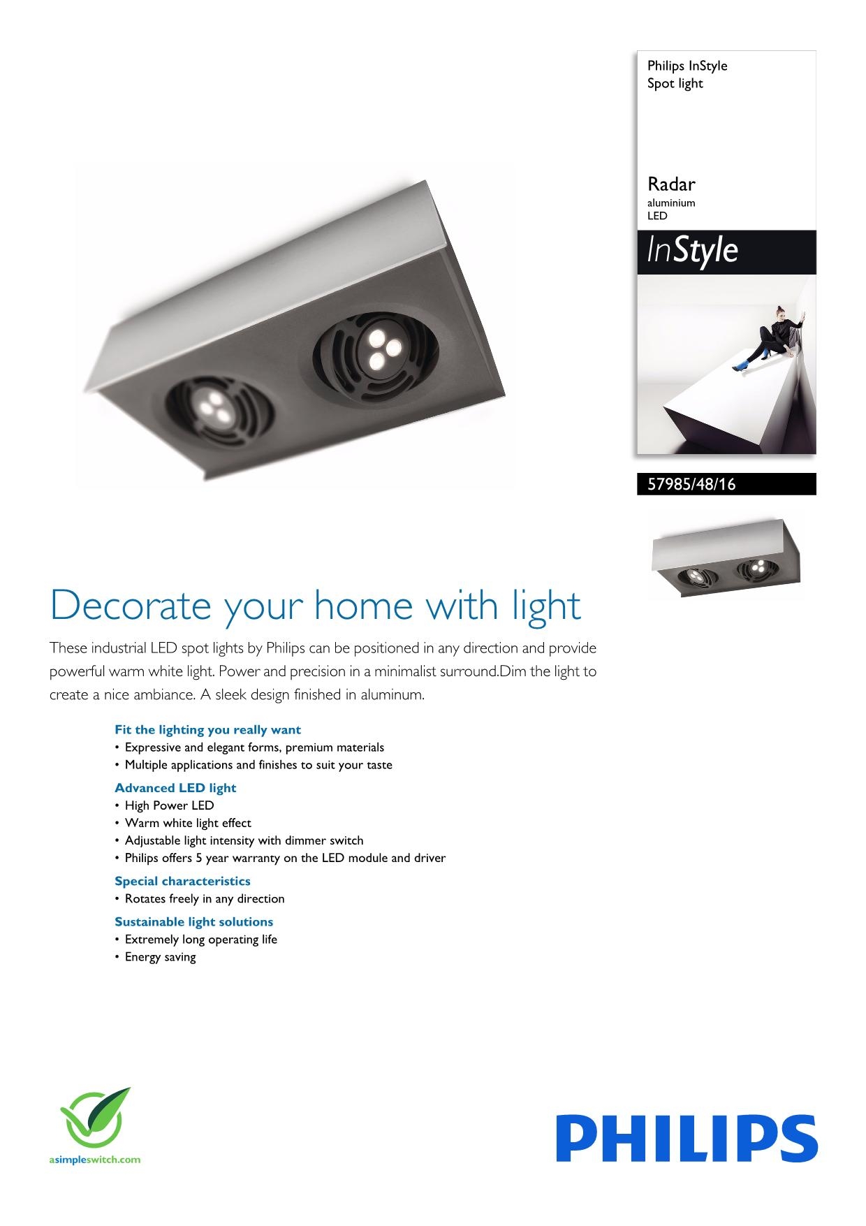 Потолочный светильник Philips 57985/48/16 из колекции ARCITONE одного из лучших производителей осветительных приборов имеет мощность 7.5 W и LED модуль. Цвет основания данной модели: алюминий. Для производства использовали высококачественный материал: металл. Потолочный светильник 57985/48/16 выполнен в современном стиле с плафоном формы круг и крепится на пластину. Купить Потолочный светильник Philips 57985/48/16 вы можете в нашем интернет-магазине Лінія Свiтла.