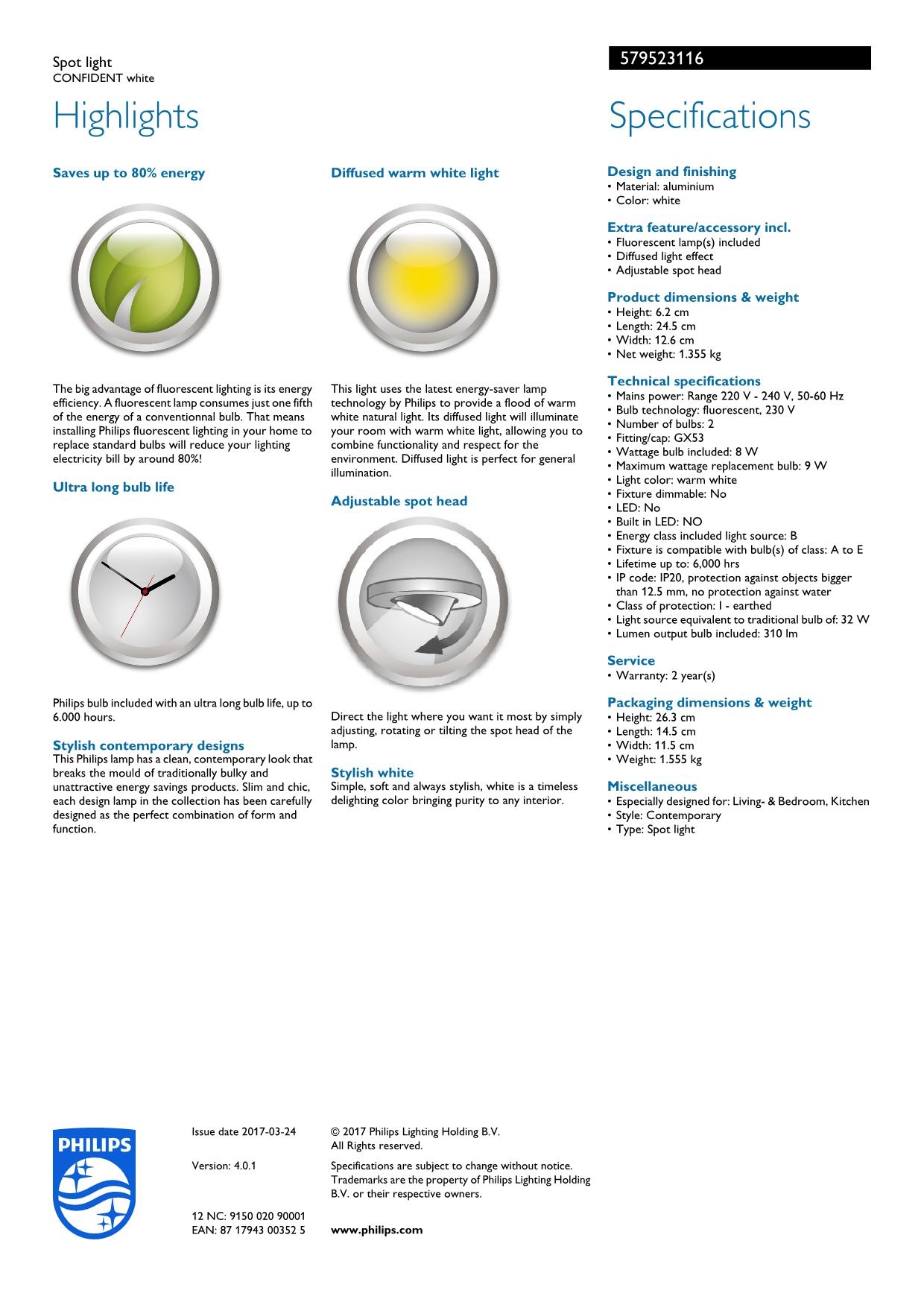 Точечный светильник Philips 57952/31/16 из колекции Ecomoods одного из лучших производителей осветительных приборов имеет мощность 9 W и цоколь GX53. Цвет основания данной модели: белый. Для производства использовали высококачественный материал: металл. Точечный светильник 57952/31/16 выполнен в современном стиле. Купить Точечный светильник Philips 57952/31/16 вы можете в нашем интернет-магазине Лінія Свiтла.