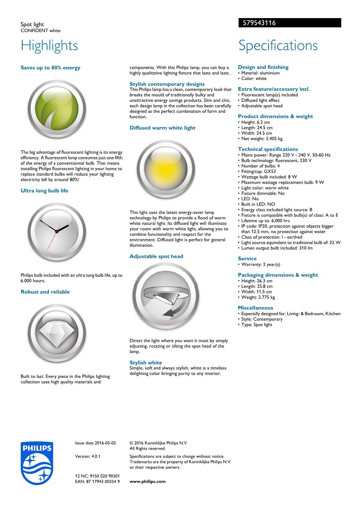 Точечный светильник Philips 57954/31/16 одного из лучших производителей осветительных приборов имеет мощность 9 W и цоколь GX53. Цвет основания данной модели: белый. Для производства использовали высококачественный материал: металл. Точечный светильник 57954/31/16 выполнен в современном стиле. Купить Точечный светильник Philips 57954/31/16 вы можете в нашем интернет-магазине Лінія Свiтла.