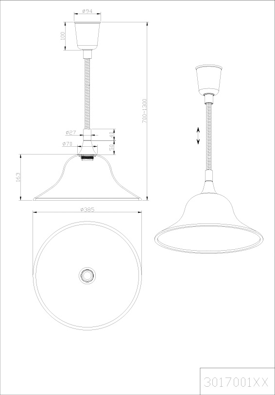 Люстра Trio 301700107 з колекції Viola одного з кращих німецьких виробників освітлювальних пристроїв має потужність 60 W и цоколь E27. Колір основи даної моделі: нікель. Для виробництва використовували високоякісний матеріал: метал. Люстра 301700107 виконана у класичному стилі з плафоном форми конус та кріпиться на гак. Купити люстру Trio 301700107 ви можете в нашому інтернет-магазині Лінія Свiтла.