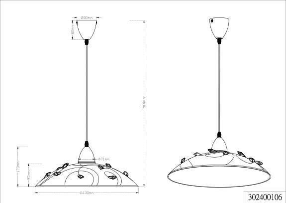 Тип стельового освітлення: Люстри-підвіси, Підвісні світильники, Люстри в спальню, Люстри з абажурами, Люстри свічки